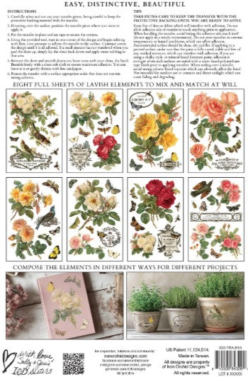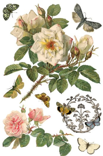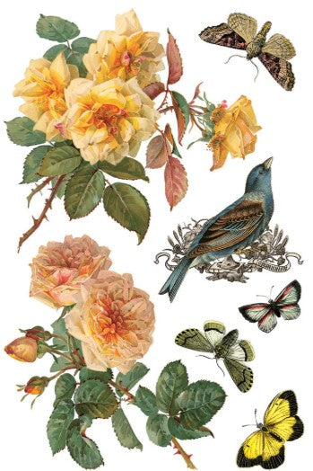 Using the illustrations of Paul De Longpré, the By Any Other Name – 8-Page 8x12" Transfer Pad features a classic collection of roses paired with birds and butterflies. Sally sourced the antique prints directly from a dealer, selecting from a book of De Longpré’s rose studies. A contemporary of Katarina Klein, his work was often compared to hers for its expressive handling of botanicals, though each artist had a distinct approach. We curated a selection of prints that preserved the character and detail of his original compositions.