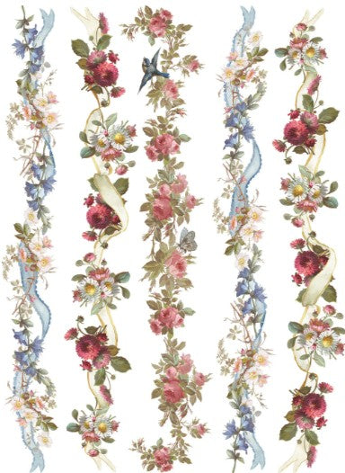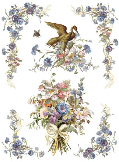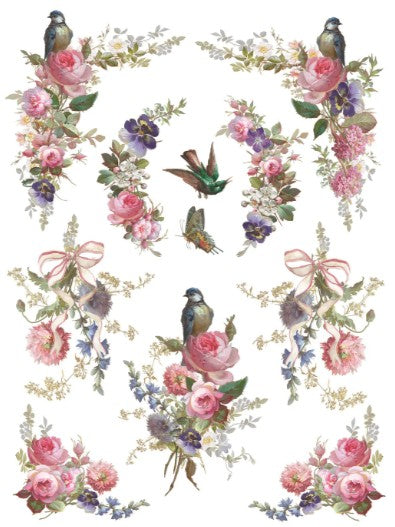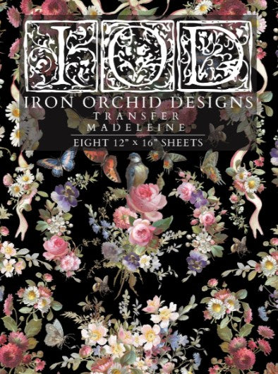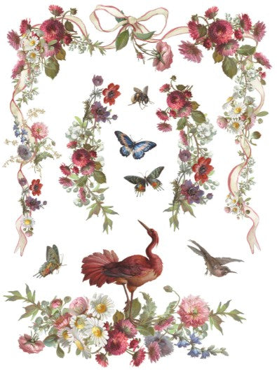 The Madeleine – 8-Page 12x16" Transfer Pad is reminiscent of vintage Parisian décor, with artwork so decadent and luscious you can almost feel the richness of the original paint. The florals are vibrant, full, and deeply saturated, and the style closely echoes the St. Germaine collection—likely by the same unnamed artist whose work has long inspired us. The name Madeleine was chosen as a nod to a small French town near Saint-Germain, tying it back to the origins of the artwork. Several elements, including the flowing ribbons, were hand-painted by a contemporary artist, Annie Quigley, specifically for this collection to complement the vintage roses, birds, bows, and swags found in the original compilations.